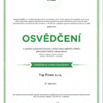 Top Power si je vědom vlastní odpovědnosti k zajištění péče o životní prostředí, potřeby jejího neustálého vylepšování a motivování zaměstnanců. Nejen z důvodu zajištění a vylepšení péče o životní prostředí, ale i vzhledem k neustále se zvyšujícím nárokům zainteresovaných stran, naše společnost nově v roce 2022 úspěšně certifikovala systém managementu environmentu dle požadavků normy ISO 14001:2015.